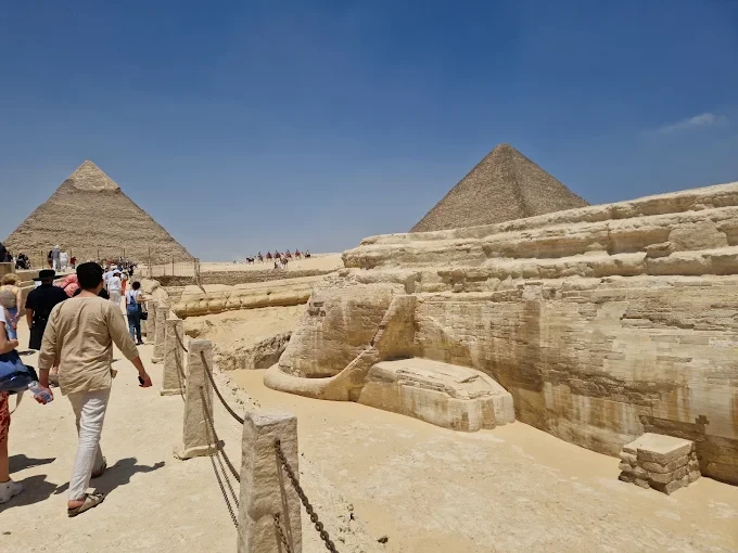 After breakfast in your hotel, start the morning at 08:00 AM as guided by a New Travel Dynamics guide to visit the Great Pyramids of Giza, Visit the Valley Temple and gaze at the Sphinx with its lion's body and the head of a king. During the tour, lunch is included (full meal per person; beverages not included).