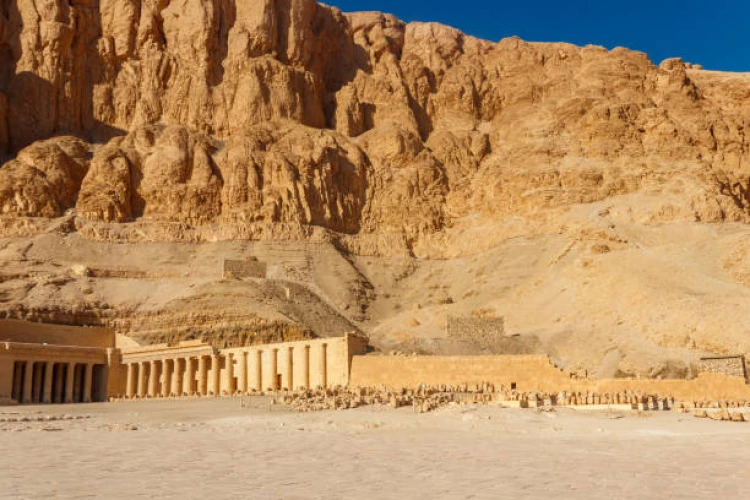 The Shot: Take a "long shot" from the bottom of the main ramp looking up. The stark white limestone against the jagged, burnt-orange cliffs of the Theban Hills creates a dramatic, high-contrast image.