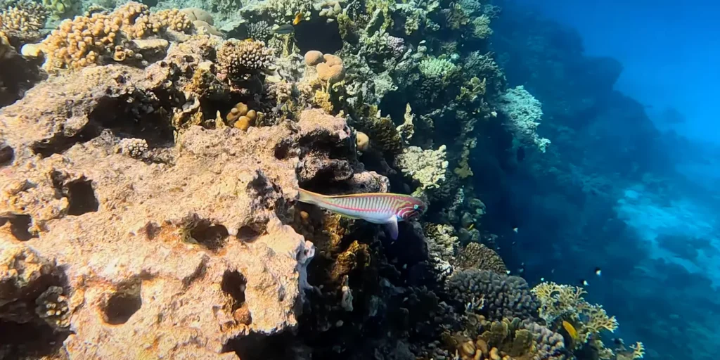 Amberjack — one of the harder-fighting fish in the Red Sea — become more catchable in autumn as they move shallower to follow baitfish. These fish are not subtle. When an amberjack takes live bait near the reef edge at Abu Ramada, the initial run is powerful enough to test tackle that would seem more than adequate for almost anything else.