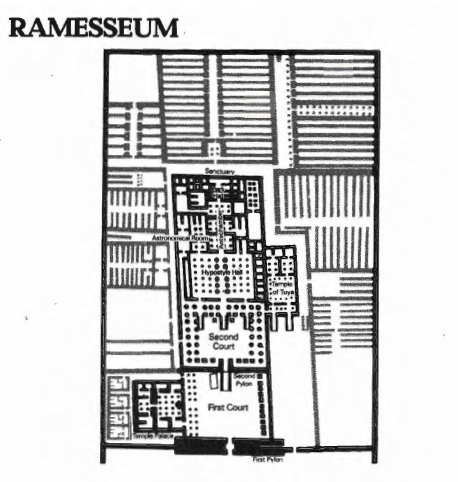 Located to the southwest of Medinet Habu, the Ramesseum is the mortuary temple of Ramesses II. The temple was dedicated to the king as well as to Amun in his eternal aspect. Classical writers referred to it as the Memnonium or the Tomb of Ozymandias, a Greek rendering of one of Ramesses II’s royal names. The modern name Ramesseum was introduced by the French scholar Jean-François Champollion and has remained in use.